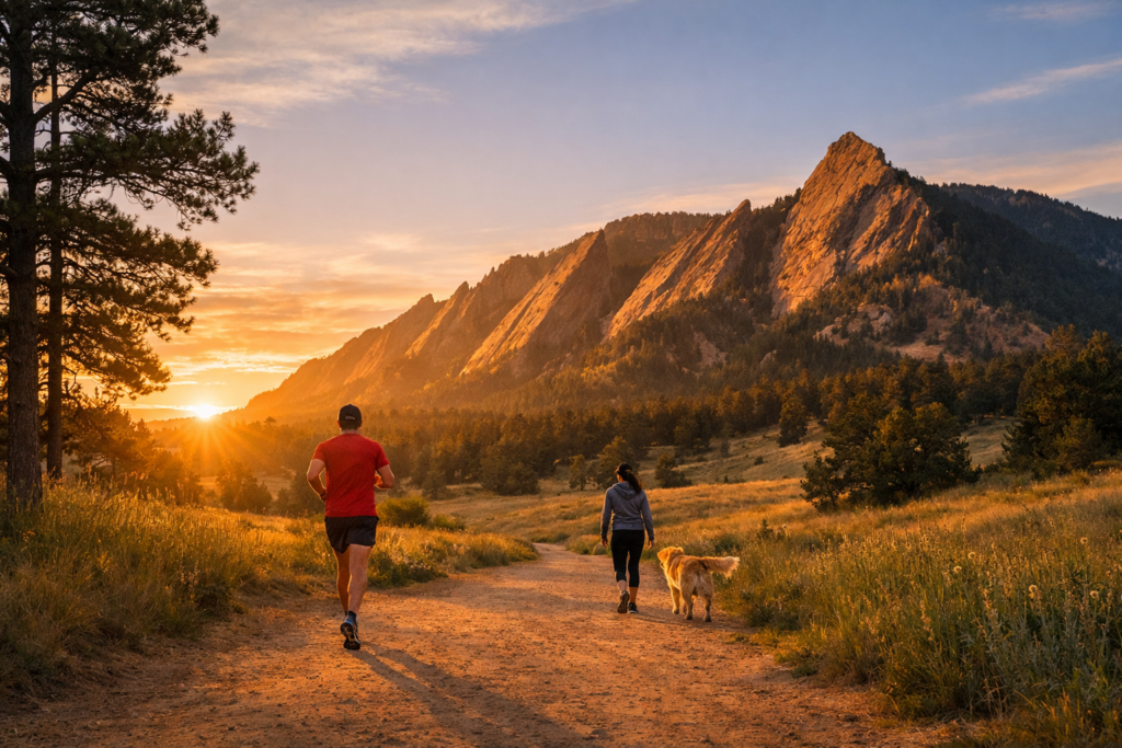 On any Monday morning, before most offices fully come alive, the trails around Boulder are already busy. Runners move quietly along dirt paths, hikers make their way toward scenic overlooks, and dog owners stroll along Boulder Creek while the morning sun begins to illuminate the foothills.