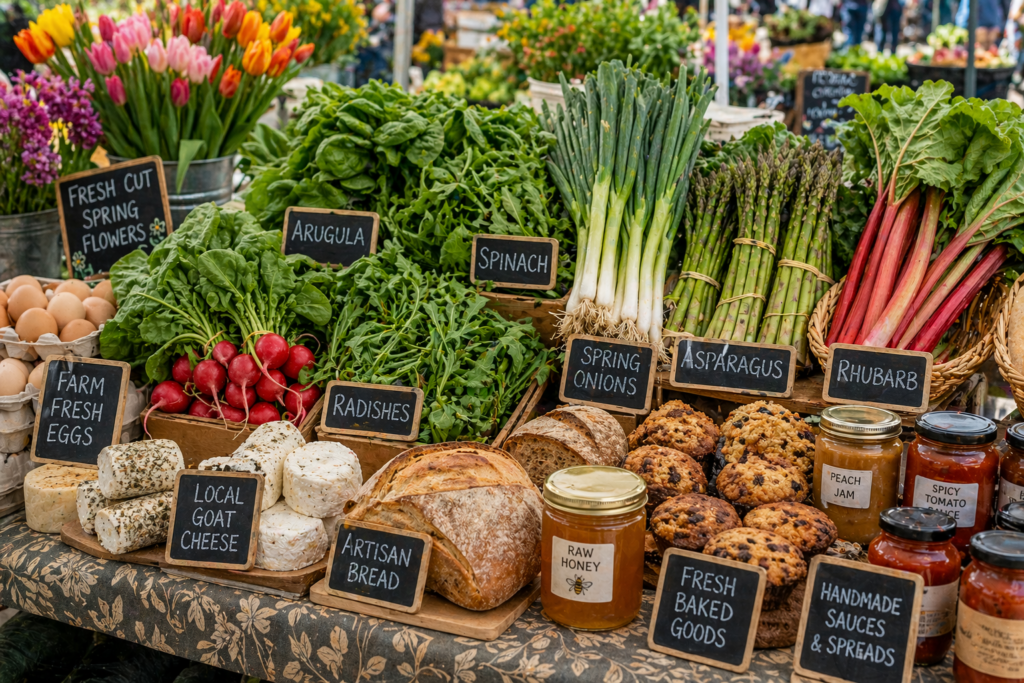 Expect to find crisp radishes, fresh spinach, arugula, spring onions, and some of the season’s first asparagus. Rhubarb is also making appearances, perfect for pies, crisps, and compotes.