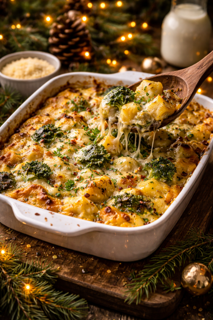 Potatoes, cauliflower, broccoli, or a mix of vegetables can be layered with cream and cheese and baked until golden and bubbling. It’s forgiving, flexible, and fills the kitchen with the kind of comforting aroma people associate with the holidays.