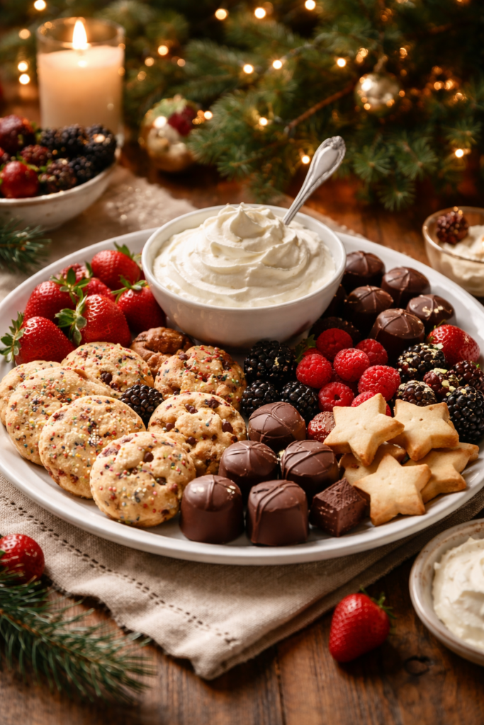 A plate of cookies, chocolates, or fresh fruit served with whipped cream is often more than enough. After a full holiday meal, people appreciate something light and simple.