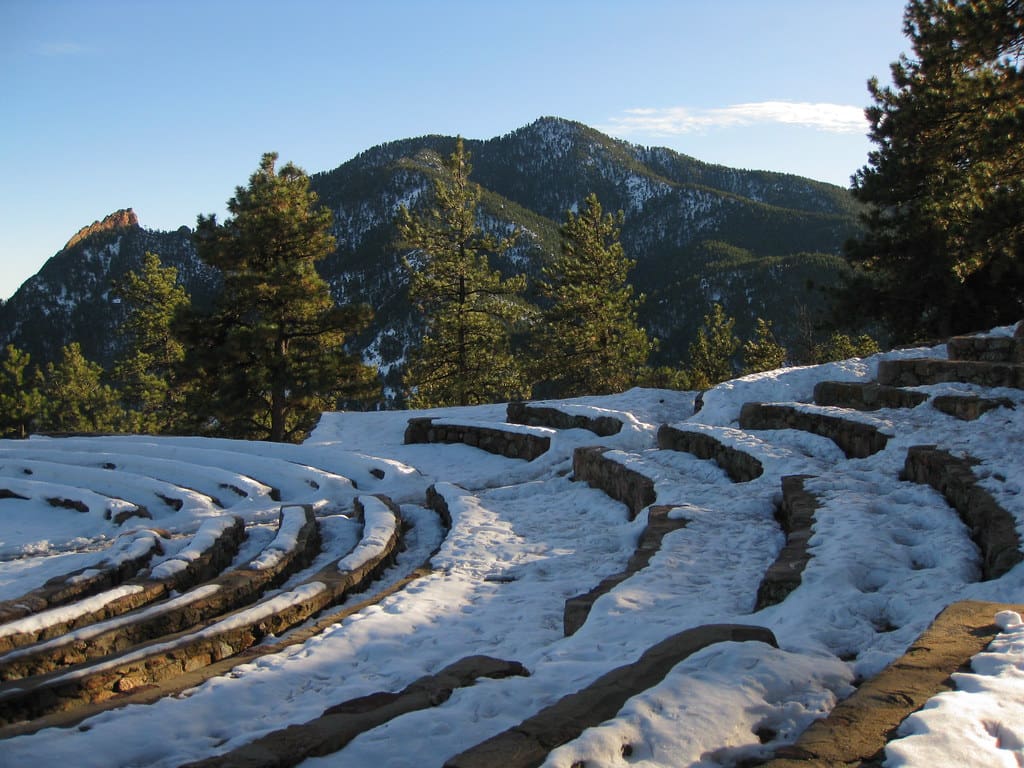 To reach Sunrise Amphitheater in Boulder, take Baseline Road west from downtown Boulder, which turns into Flagstaff Road as it winds up the mountain. Follow Flagstaff Road for about 3.5 miles, then turn left onto Flagstaff Summit Road. Continue for about half a mile until you reach the amphitheater’s parking area. The drive is scenic but steep, so take it slow, especially in winter conditions. A short, easy walk from the parking lot leads to the amphitheater, where you’ll be rewarded with panoramic views of Boulder, Denver, and the eastern plains. A $5 parking fee may apply for non-Boulder residents, so be sure to check current regulations before heading up.