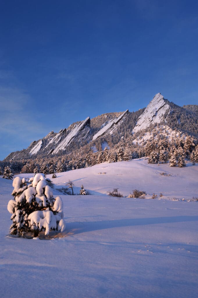 The Flatirons in Boulder, CO after a heavy spring snowfall