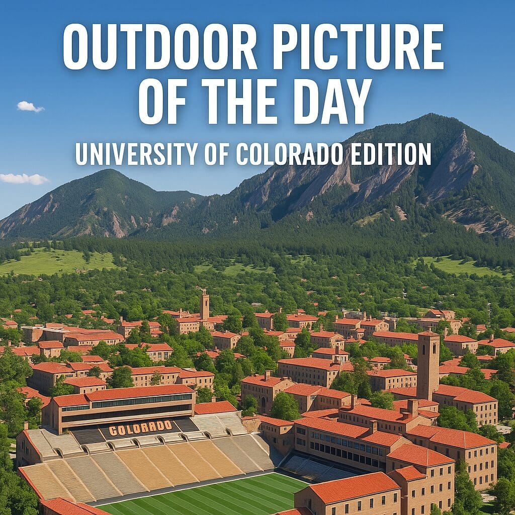Today’s epic picture of the day captures one of the most breathtaking perspectives in Boulder — the University of Colorado’s Folsom Field, framed by the red-roofed campus buildings, the striking backdrop of the Flatirons, and the rolling contours of Green Mountain. In one image, you see the beating heart of the CU Boulder community and the natural splendor that makes this city unlike anywhere else in the country.