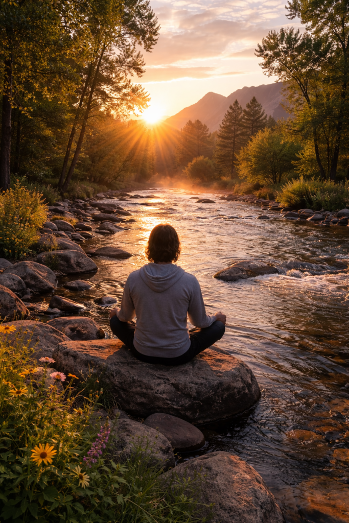 The figure in the frame stands without urgency. No pose. No performance. Just someone sharing the same space as the water, the trees, and the last warmth of the day. It’s a familiar Boulder posture — hands tucked in, shoulders relaxed, attention outward instead of inward.