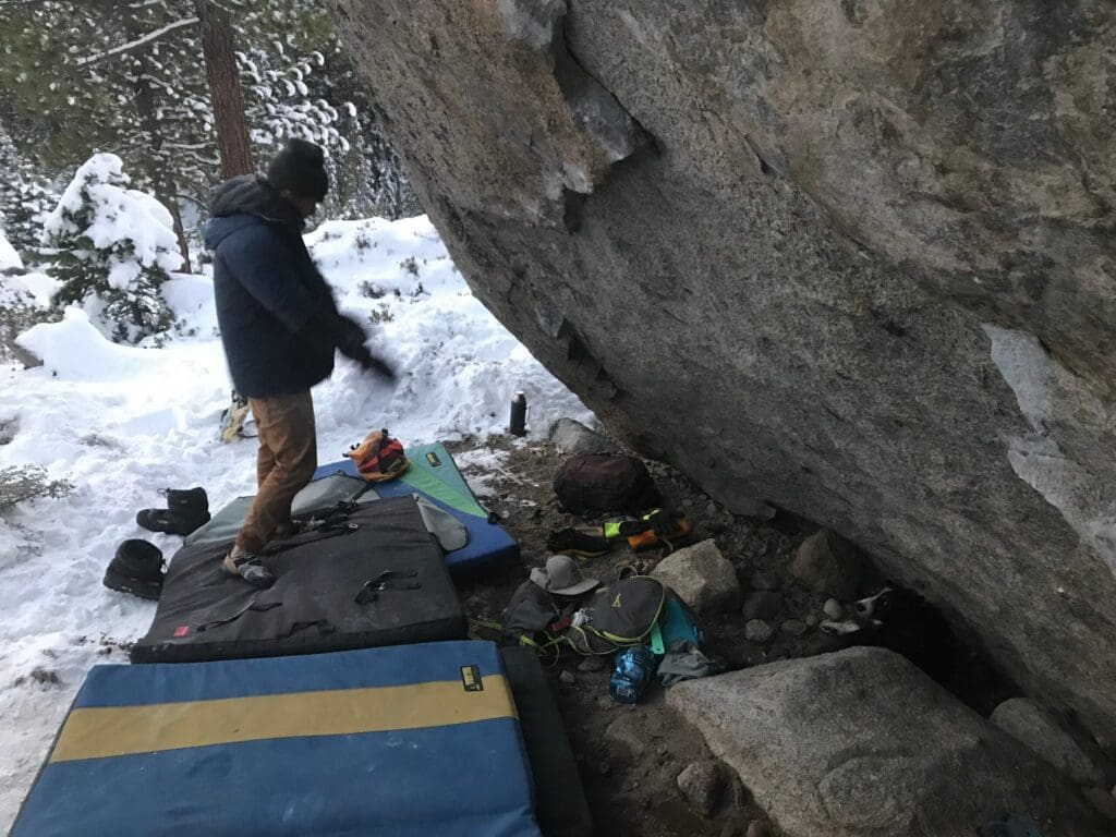 Today’s climber arrives with more than one pad, carefully arranging them beneath the problem. In winter, crash pads become even more important. Cold muscles react slower, ground conditions can be uneven or frozen, and bulky layers slightly change balance and movement.