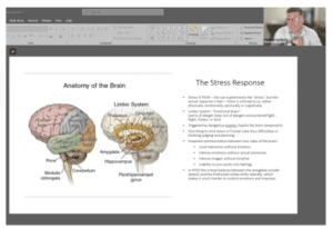 Kevin gave us language for what happens to someone’s brain in those moments. Under extreme stress, the part of the brain that makes us reflective and relational goes quiet. He calls it the “wizard brain,” the part that holds speech, nuance, sarcasm, facial expression, and long-term thinking.