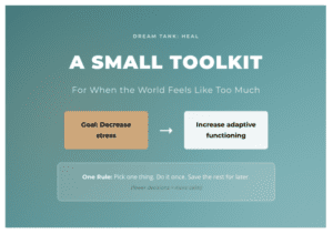 What if I had a small, accessible toolkit that held both sides of the equation… ways to steady my body when it’s activated, and ways to reclaim agency when the world makes me feel purposeless?