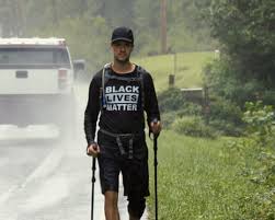 So Rob decides to walk. He begins in Jackson, Mississippi at the Mississippi Civil Rights Museum. The plan is to walk fifteen hundred miles to Black Lives Matter Plaza in Washington D.C., twenty five miles a day for sixty full days. All before the 2020 presidential election. A small crew follows Bliss to document the journey and, presumably, keep him from experiencing grievous bodily harm. As he walks, Bliss wears a Black Lives Matter shirt. On his backpack is a sign that reads, “Come Walk With Me.”