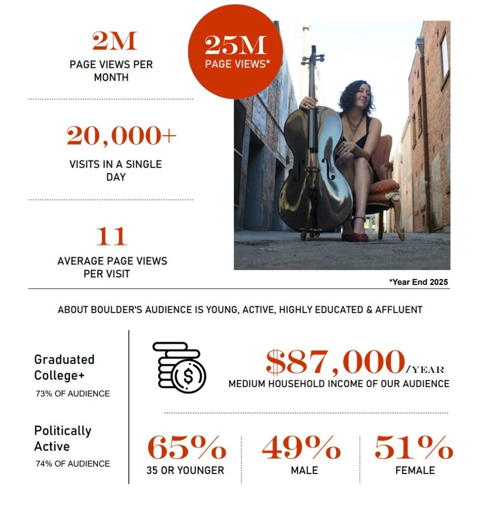 With a mission focused on positivity and community connection, AboutBoulder.com has grown into a leading local media platform with an engaged and loyal readership. We’re passionate about collaborating with local businesses, organizations, and partners to share stories, opportunities, and information that truly resonate.